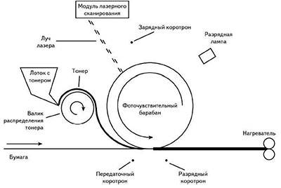 Лазерный принтер – это сложное высокотехнологичное устройство, предназначенное для быстрого создания оттиска путем нагрева порошкообразного тонера. Объяснить его работу довольно-таки непросто. Если в общих чертах, то принцип таков: на поверхности фотобарабана лазерным лучом создаются участки с электромагнитным зарядом, соответствующие наносимому отпечатку. К ним притягивается красящее вещество. Далее бумага специальным механизмом протягивается через вал. В этот момент происходит нанесение тонера на бумажный лист. Чтобы краска не осыпалась, а надежно прилипла к странице, она разогревается до температуры 180-200 °С. Именно по этой причине бумажный лист из лазерного принтера выходит теплым.