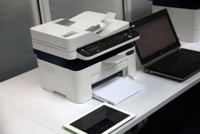 В состав МФУ входит принтер, справляющийся с основными задачами по выводу содержимого электронных документов на бумажные носители.