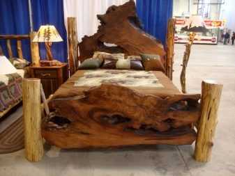 Учитывая специфику работ с массивом, более частыми в применении являются разные виды пиломатериалов: гораздо легче будет самостоятельно создать кровать из бруса либо выстроганных или обрезанных досок.