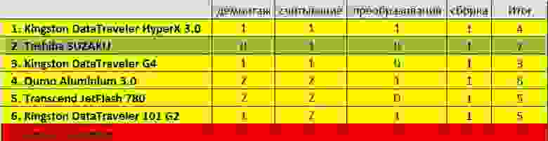 Победителем в номинации наиболее вероятного успешного восстановления файлов в случае поломки стал накопитель Toshiba SUZAKU, так как данная флешка набрала наименьшее количество баллов. Если бы я выбирал накопитель для себя, исходя из соображений наибольших шансов на успешное восстановление файлов в случае аппаратной поломки, то выбрал бы именно его. Восстановление данных с него наиболее быстрое, и вероятность получить данные очень высока. Справедливости ради надо отметить, что USB накопители под брендом Toshiba появились сравнительно недавно. Это новый игрок на рынке, столь низкие цены связаны с маркетинговыми ходами компании, и, по прогнозам, цены на эту продукцию вырастут.