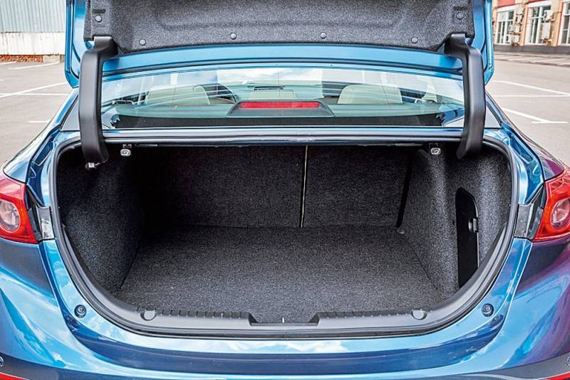 Mazda3 продается в Украине в двух вариантах – на нашем тесте был седан, но есть еще и хэтчбек. Седан, конечно, не так дружелюбен к габаритным грузам – большой квадратный ящик запихнуть в узкий проем достаточно сложно. Но глубины для повседневных нужд хватает