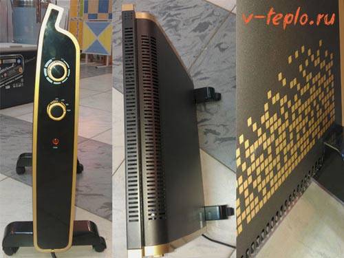 - прибор безопасный, так как отсутствуют открытые спирали. Низкотемпературный нагревательный элемент не нагревает корпус выше + 60 °C – это температура, которую выдерживает рука без неприятных ощущений. Находящиеся в комнате дети и животные не подвержены риску случайного ожога;
