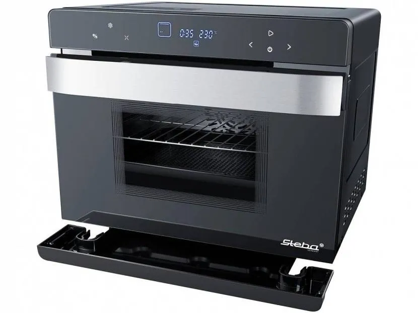 - Steba DG 40. У модели есть все основные функции, включая конвекцию, а также большой выбор автоматических программ. Управление: сенсорное, мощность 2100 Вт, камера объемом 40 л покрыта нержавеющей сталью.