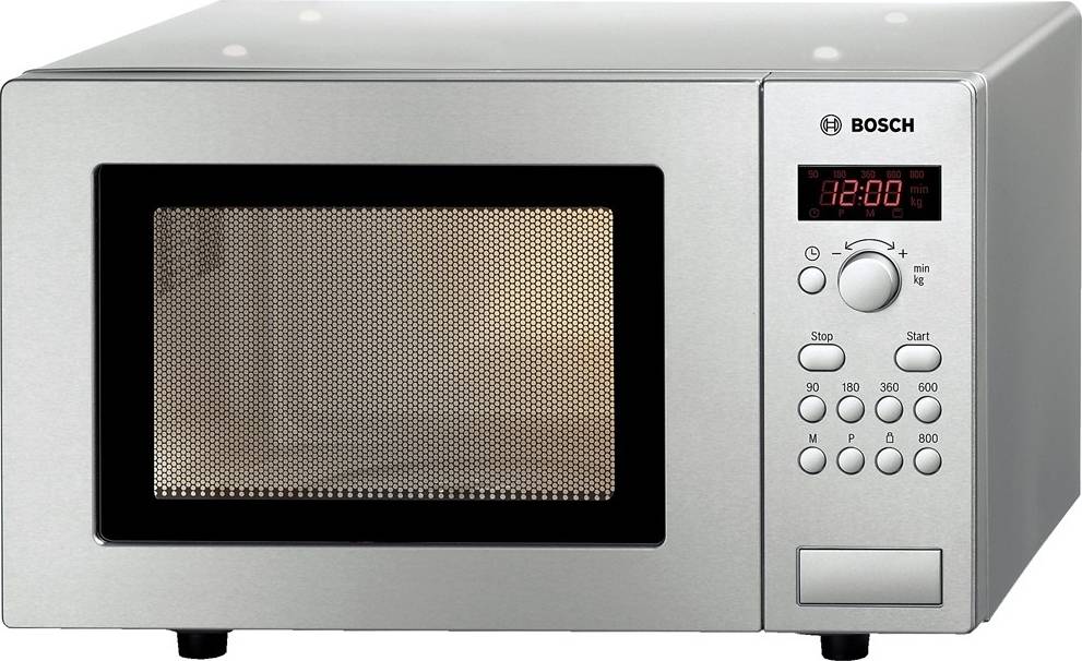 Как всякая печка Bosch отличается качественной сборкой. Малогабаритная модель надежна и удобна. Пять мощностных уровней, максимум — 0,8 кВт. Чтобы не перегружать сложностями мини-устройство, в ней предусмотрели только две автопрограммы. Бонус — можно занести в память рецепт своего любимого блюда. Дверца открывается вправо. Есть таймер.