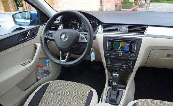 Приборная панель идентична более ранней Rapid, которая в свою очередь используется совместно с VW Vento. Дизайн сдержан, но всё находится там, где вы ожидаете. В центре внимания – новый большой и достаточно чёткий 6,5-дюймовый сенсорный экран с поддержкой USB, AUX и Bluetooth, а также с возможностью подключения MirrorLink. Другое новое оборудование включает в себя чувствительные к дождю дворники и складывающиеся в электронном виде наружные зеркала, которые помогают преодолеть разрыв между Rapid и более оснащёнными конкурентами. «Умные особенности» торговой марки Skoda проявляются в виде зажима для держателя карт на центральной консоли, в котором хранятся все ваши пропуски и тому подобное.