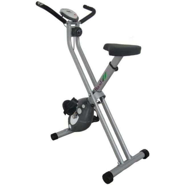 Это наиболее компактная модель среди всех изделий, вошедших в наш рейтинг лучших велотренажеров года. Прежде всего, конструкция оборудована складным механизмом – после тренировки его можно сложить и убрать в шкаф или в кладовку. В рабочем состоянии габаритные размеры данного агрегата составляют 81х43х113 см. Он способен выдерживать нагрузку вплоть до 120 кг. Масса самого устройства – всего 16 кг, его сможет перенести с одного места на другое даже хрупкая девушка. Педали изготавливаются из пластика повышенной прочности, оборудованы специальным рифлением, которое обеспечивает хорошее сцепление с обувью даже на высокой скорости. Руль и седло при необходимости можно отрегулировать.