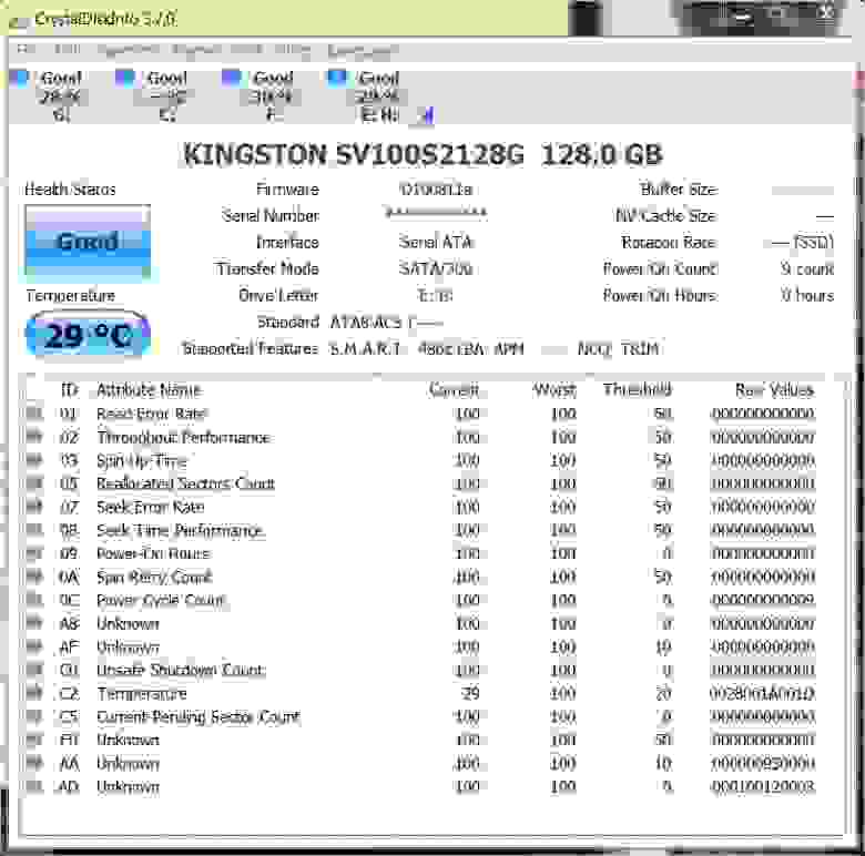 Crystal Disk Info — простая и бесплатная утилита с данными диагностики S.M.A.R.T.