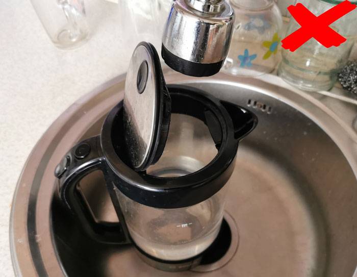 Никогда не ставьте эл.чайник в раковину, когда набираете в него воду.