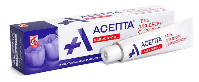 «Асепта» — современное действенное средство, используемое для исцеления болезней десен. Одно из основных работающих веществ «Асепты» — прополис, который давно известен как эффективнейшее антивосполительное действие.