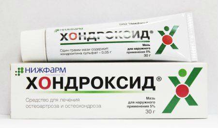 Самый популярный представитель – Хондроксид. Кстати в составе этого хондропротектора находится и Димексид, потому некий противовоспалительный потенциал у мази есть, но это заслуга дополнительного вещества, а не основного.