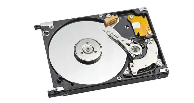 Жесткий диск работает с использованием набора тонких ферромагнитных пластин, уложенных друг на друга.