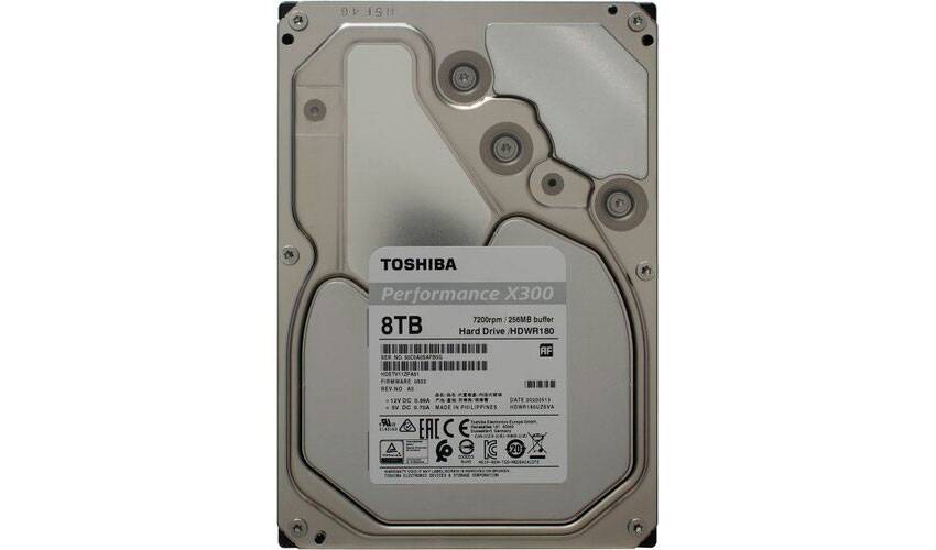 Toshiba X300 на 8 Тб ≈ 16000 рублей. Потребители компьютерных комплектующих от Toshiba знают, насколько высокого качества их продукция. Если говорить конкретно о данном жестком диске, то этот гигант на 8 терабайт, способен удивить не только большой емкостью накопителя, но и высокой скоростью работы в 7200 об/мин, при кэше 128 мегабайт. Конечно, стоит Toshiba X300 очень дорого, но и его параметры достойны уважения. Также к числу негативных моментов стоит отнести то, что производитель дает незначительный гарантийный срок на все модели жестких дисков серии Toshiba X300. Срок гарантийного обслуживания составляет всего 2 года со дня покупки.