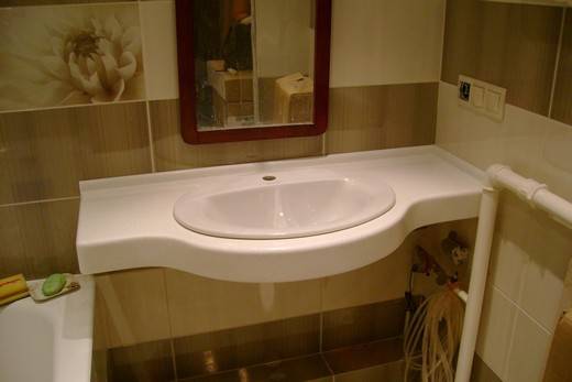 - Встраиваемые. Чаша полностью или частично встраивается в основание, представленное тумбой или столешницей. Обычно имеют большие размеры, поэтому не всегда подходят для маленьких помещений.