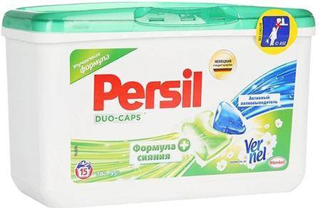 Средство Persil Duo-Caps Свежесть от Vernel является одним из лучших в плане эффективности и безопасности. Капсулы справляются даже со сложными пятнами благодаря содержанию активного пятновыводителя и специальных компонентов для сияния белья. В состав входят энзимы, ПАВ, мыло, фосфонаты, консервант, краситель, отдушка, но их доля тут незначительна и не создает угрозы для здоровья человека или для состояния машинки.