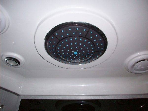 Кроме водных режимов, такие изделия имеют и различные световые функции. На их потолке располагаются разноцветные лампочки, мигающие в такт льющейся воде и позволяющие вкусить истинное наслаждение от вечернего и утреннего душа. Они построены по всем правилам хромотерапии — лечения цветом.