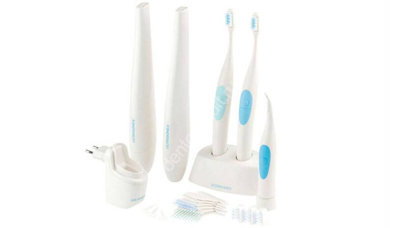Данный тип зубных щеток более тщательно чистит зубы и подходит для ежедневного использования. По внешнему виду щетка такая же, как и электрическая, только имеет более массивную ручку. Это обусловлено тем, что в ней находится не только моторчик, который запускает движение, но и пластина, которая выпускает ультразвуковые импульсы.