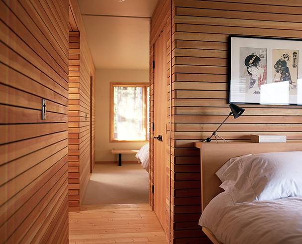 Деревянная отделка делает комнату светлой и воздушной. Чистая поверхность с минимальной видимой текстурой не увеличит внутреннюю нагрузку и расширит пространство. Вагонка подойдет для облицовки потолка.