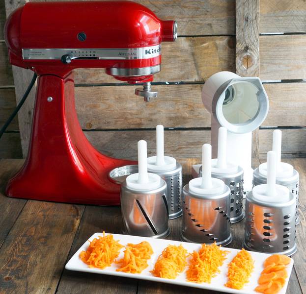 Любителям часто готовить овощные салаты или супы необходимо позаботиться о присутствии в комплекте устройства таких насадок, как шинковка и нарезка ломтиками.