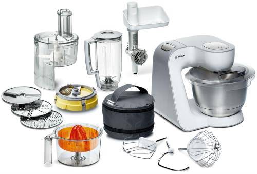 На базе одного устройства были совмещены сразу несколько приборов – миксер, блендер, мясорубка, соковыжималка, шинковка, кофемолка и т. д. Это означает, что в комплекте с хорошим и многофункциональным прибором обязательно должны продаваться разнообразные насадки, ножи, тёрки, ёмкости для продуктов, фильтры и т. д
