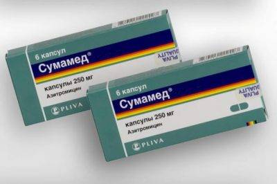 Еще один популярный антибиотик при бронхите — Сумамед. Это бактериостатическое антибактериальное средство, содержащее азитромицин. Производится он в Хорватии. Это более дорогой аналог отечественного Азитромицина. Курсовая доза препарата — 1,5 г. Принимают его за 1 час до или спустя 2 часа после приема пищи.