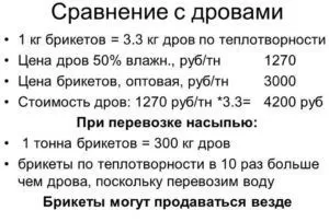 Сравнение стоимости брикетов с дровами