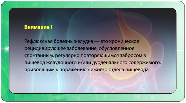 - ГЭРБ — гастроэзофагиальная болезнь (слабость или дефект сфинктеров пищевода, желудка);