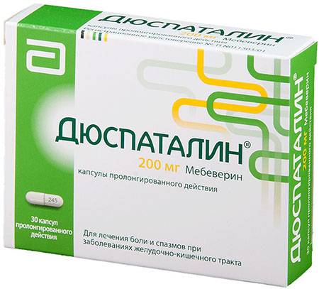 «Дюспаталин» также является спазмолитиком, регулирующим двигательную активность мускулатуры пищеварительного тракта. Главный компонент препарата — вещество мебеверин. Назначается чаще по поводу спазмов, вызванных «синдромом раздражённого кишечника».