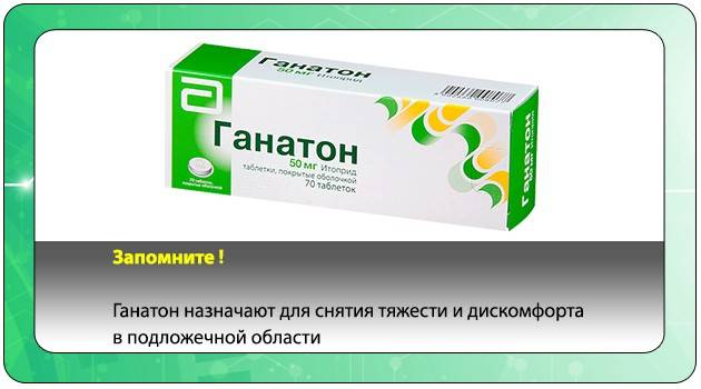 Активное вещество препарата стимулирует моторную функцию ЖКТ, что облегчает прохождение содержимого в двенадцатиперстную кишку и освобождение желудка. Ганатон — эффективное противорвотное средство. Его целесообразно назначать при следующих патологических состояниях: