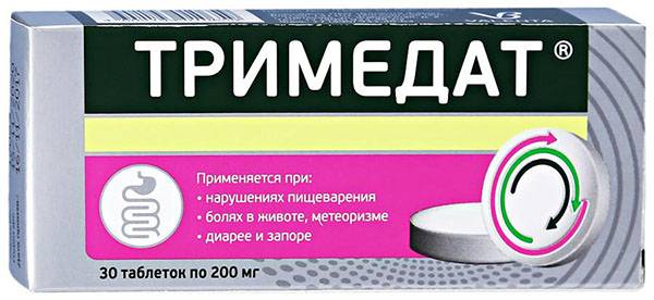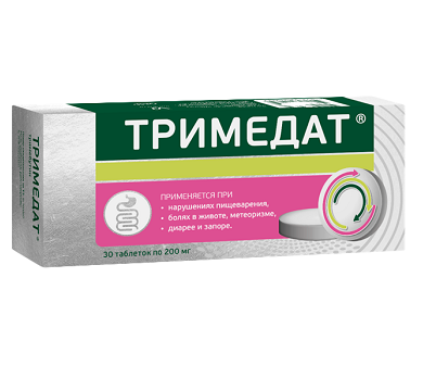 Это средство имеет таблетированную форму, действующим веществом лекарства является тримебутин. Он также обладает выраженным прокикетическим действием, сходным с эффектом известного прокинетика Ганатона (Итоприда), поэтому препарат способен восстанавливать моторные функции желудка и кишечника.