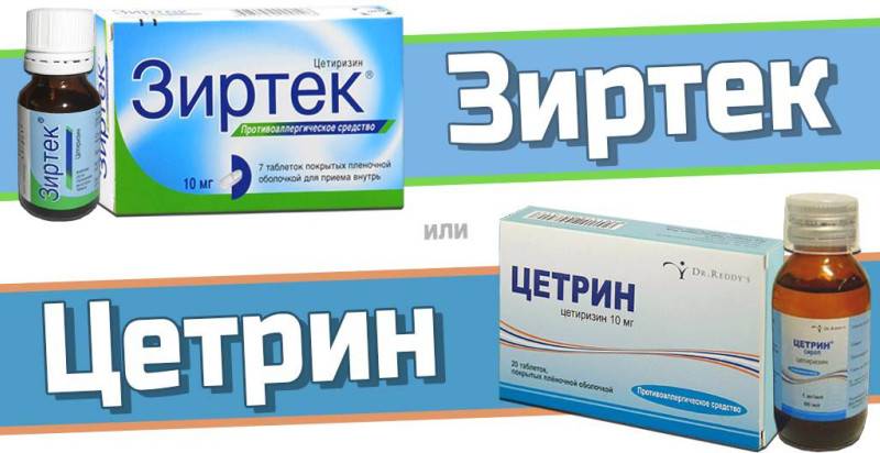 | Цетрин (табл.) | Зиртек (табл.) | Цетрин (сироп) | Зиртек (капли) |