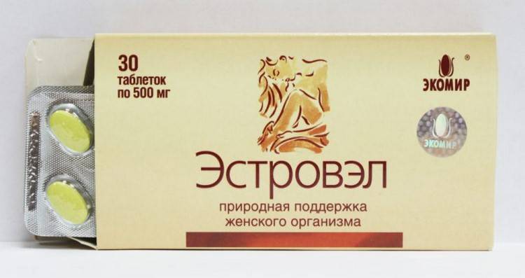 - Эстровэл – эффективные таблетки, помогающие нормализовать сон, повысить работоспособность и уменьшить интенсивность приливов.Их назначают на этапах пременопаузы и менопаузы, а также при раннем климаксе. В состав лекарства входит три фитоэстрогена (цимитифуга, экстракты соевых бобов и крапивных листьев). Именно они нормализуют работу вестибулярной системы и тем самым, уменьшают интенсивность всех неприятных климактерических симптомов. Экстракт крапивы устраняет кровотечения. Входящий в препарат бор противодействует развитию остеопороза. Находящийся среди компонентов таблеток витаминный комплекс повышает иммунитет дамы, ее устойчивость к стрессам, а также снимает появившуюся отёчность конечностей. Препарат назначается также с целью нормализации менструального цикла. Курс лечения 1 месяц по 1-2 таблетки в сутки. Принимают только после еды.