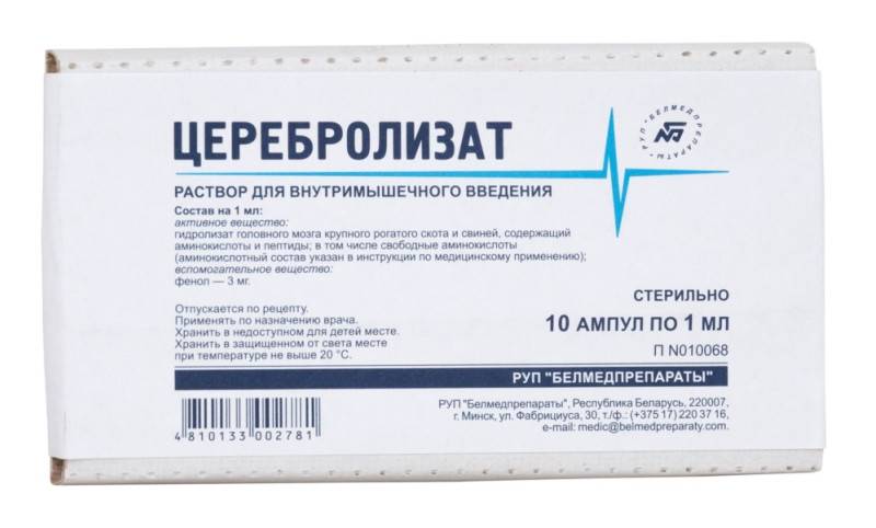 - Церебролизат – содержит активные пептиды и аминокислоты. Выпускается в ампулах тёмного цвета.