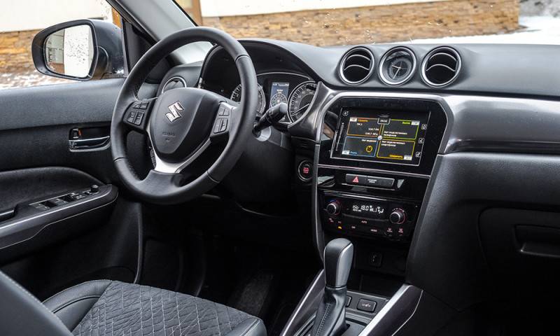 Внутри Suzuki Vitara вы не найдёте ничего изысканного и ультрасовременного. Да, салон получился довольно актуальным для нынешних автомобилей, симпатичным и местами сдержанным. Зато уровень эргономики тут образцовый.