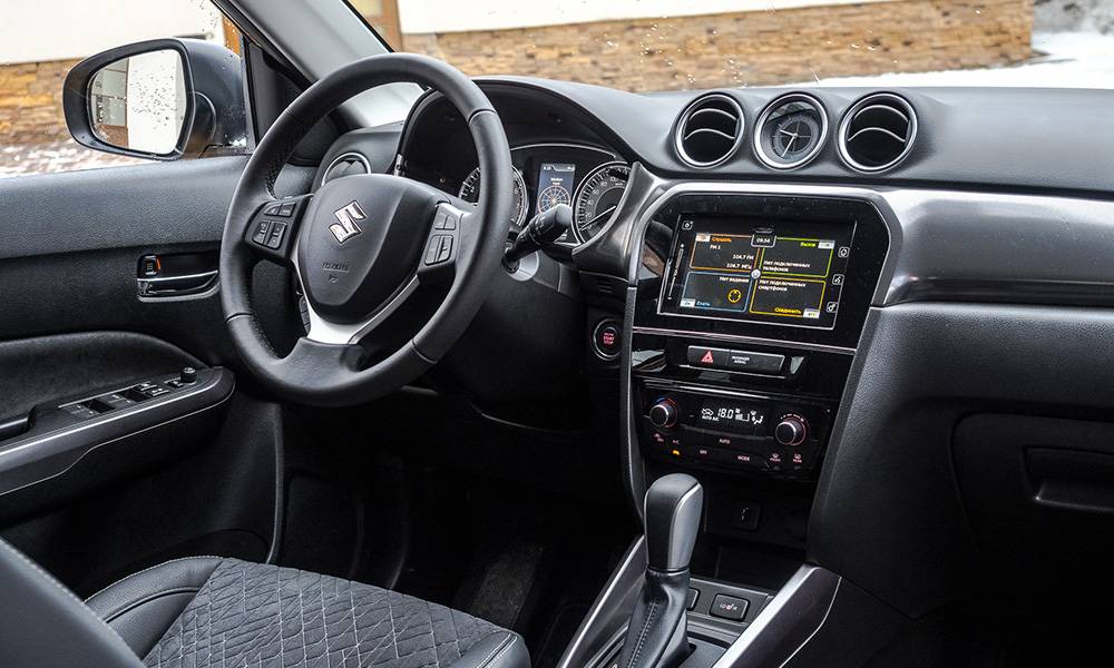 Внутри Suzuki Vitara вы не найдёте ничего изысканного и ультрасовременного. Да, салон получился довольно актуальным для нынешних автомобилей, симпатичным и местами сдержанным. Зато уровень эргономики тут образцовый.