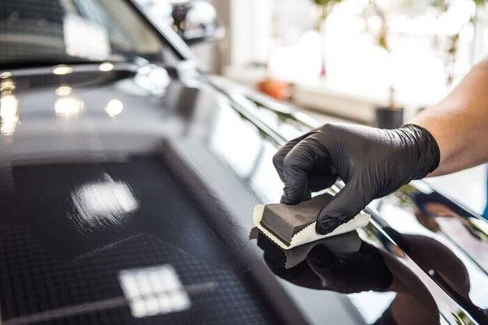 Сначала готовят кузов, специально полируют его, с применения мягкой пасты, причем делают это даже если машина у вас не новая. После автомобиль обрабатывают спецподготовительным составом. Зачем это нужно? Чтобы полироль не конфликтовала на химическом уровне с другими элементами на транспортном средстве. Это может быть пыль, грязь или остатки предыдущих процедур.
