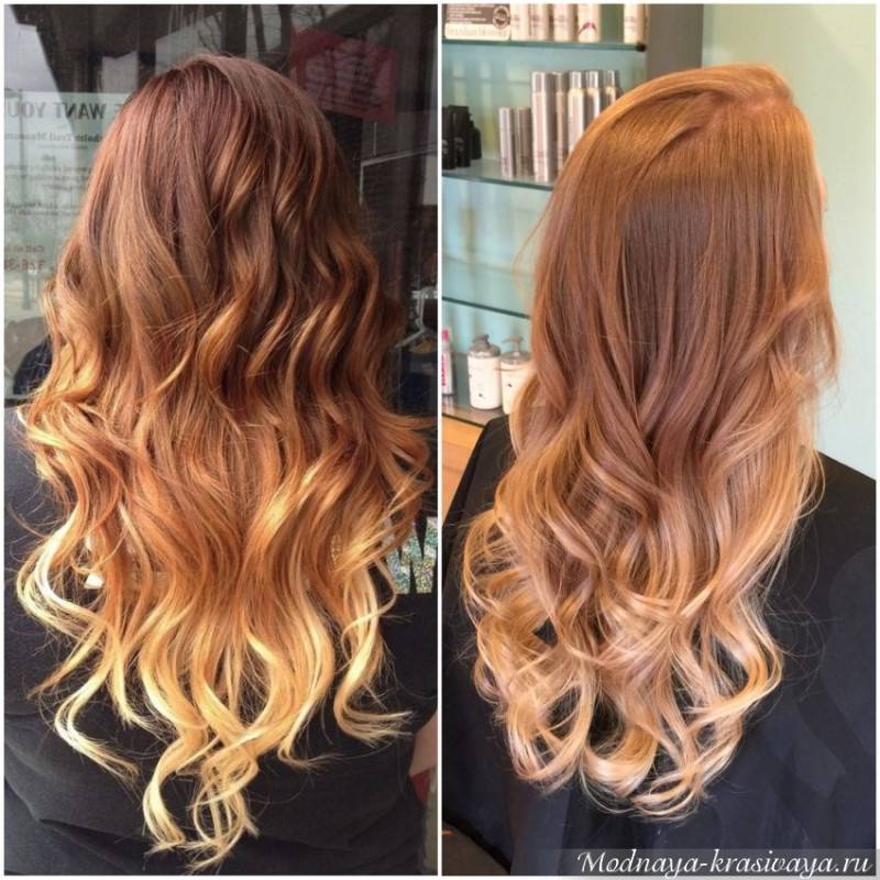 Русоволосым девушкам и женщинам также можно выбирать и воплощать на голове разные фантазии в стиле омбре. Все зависит от предпочтений – одним нравится естественность, мягкая женственность. В этом случае, лучше выбирать гамму в соответствии с цветотипом: холодным Лету и Осени к лицу будут горький шоколад, кофе с молоком, кофейный ирис и другие вкусные оттенки. Теплым Осенним и Весенним красавицам – все краски лета (как ни парадоксально!) – медовые, пшеничные, соломенные, а в качестве затемнения – орех или ольха.