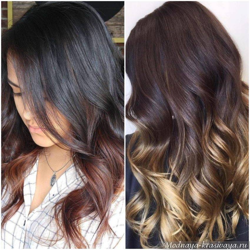 Шатуш, Омбре, Балаяж на темные волосы Фото
