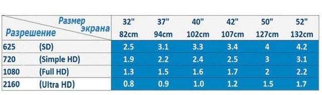 Минимальное расстояние от экрана до места просмотра в зависимости от диагонали и разрешения экрана