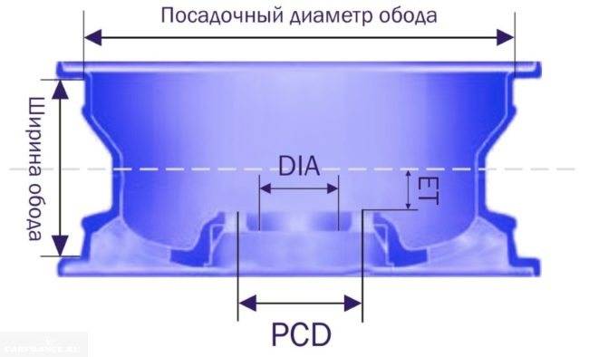 - Расстояние от привалочной плоскости диска до центра покрышки. Обозначается ЕТ.
