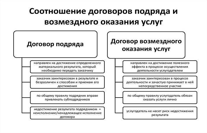 Отличия договора подряда от договора оказания услуг и возмездного оказания услуг