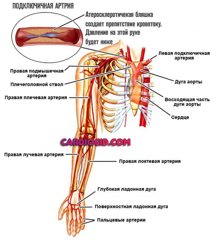 Патологии, вызывающие изменения в артериальном давлении верхних конечностей:
