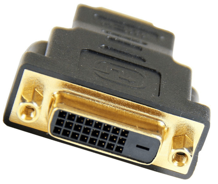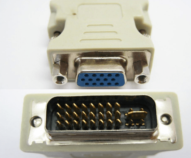 The DVI-I connector’s big straight pin is rather broad. Because the DVI-I has extra pins, the male socket of a DVI-I cable cannot attach to a DVI-D female adapter because it lacks slots for the extra pins.