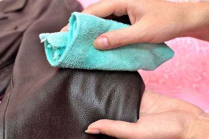 Материал экокожа не любит щеток, поэтому протирать ее нужно мягкой тряпкой со средствами для деликатного ухода. Если таких нет, подойдет мыльный раствор. При больших загрязнениях можно позволить обработать участки материи растворам спирта в пропорции 50 на 50.