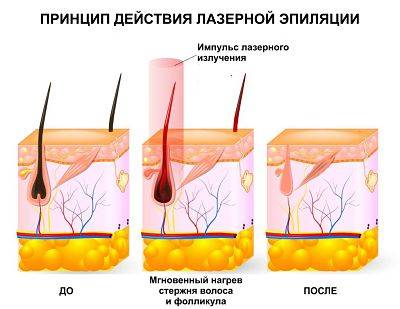 Такая процедура, как лазерная эпиляция, относится к радикальному методу удаления волос. Основывается она на разрушении волосяных фолликулов с помощью лазера. Направленное воздействие луча проникает сквозь внешний слой кожи и с помощью нагревания разрушает фолликулы. Процедура является безболезненной и имеет длительный эффект, но, кроме достоинств, обладает и недостатками: