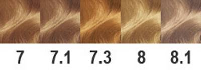 - 7.4 (ранее данный оттенок классифицировался как 7.40) – «Золотистый медный»: яркий, максимально рыжий оттенок;