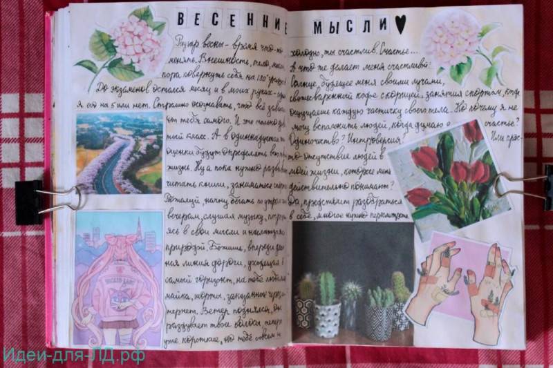 Дневник может быть создан в едином стиле или каждая тема может быть оформлена особым образом. Все это целиком зависит от желаний девочки.