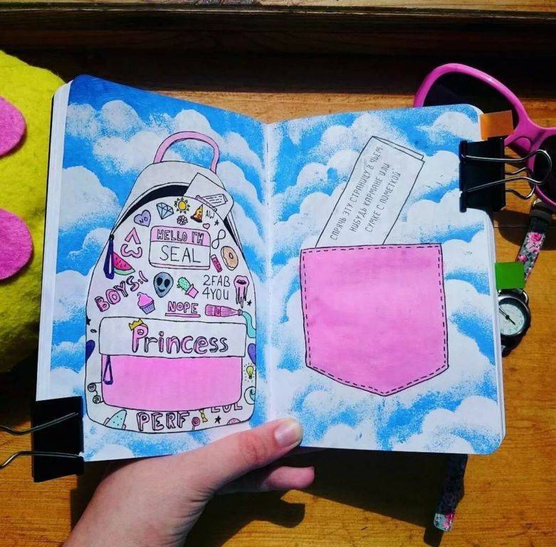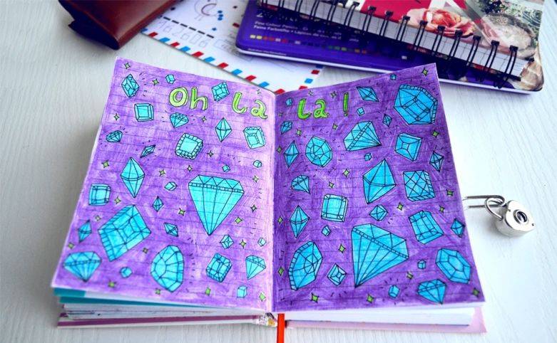 Жизнь девочки сложно представить без всевозможных красивостей. Поэтому каждая страница может оформлена в уникальном и неповторимом стиле. Это может быть интересный рисунок, красивая срисовка, необычное изображение или фото, крохотные бантики или цветы.