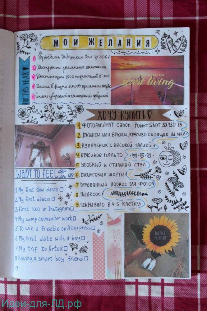 Третью и четвертую страницу обычно отводят семье и друзьям. А все остальные листочки полностью зависят от характера обладательницы дневника. Обычно здесь находится место для: