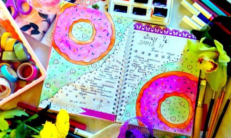 Выражать свои мысли и мечты мы привыкли словами и предложениями. Дневнику мы доверяем свои радости и печали, делимся с ним сокровенным и рассказываем ему о наших планах. Некоторые пишут в нем ежедневно, а кто-то фиксирует лишь яркие и запоминающиеся моменты жизни. А что, если добавить к привычным текстам и стихам, цитатам и смешным историям немного визуализации? Если, к примеру, вы пишите в дневнике о своих увлечениях и небольших страстях, вы можете нарисовать свое любимое занятие или его атрибутику: спорт, рукоделие, путешествие, книги. Вместо того, чтобы писать: «Я обожаю море» или «Я люблю шоколад» можно ведь это нарисовать! Поверьте, когда вы вернетесь к своему бумажному другу через несколько лет или даже несколько десятилетий, вам будет гораздо приятней пересмотреть сотни картинок, ежели перечитать десятки тысяч слов.