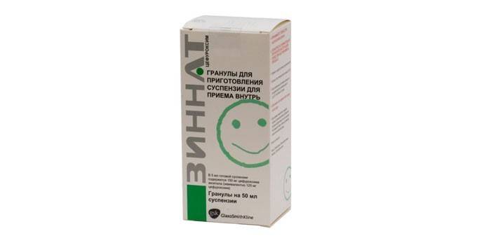 - Зиннат – цефалоспорин 2 поколения. Суспензия принимается по 125-500 мг дважды в сутки 5-10 дней. Противопоказана детям до 3 месяцев.